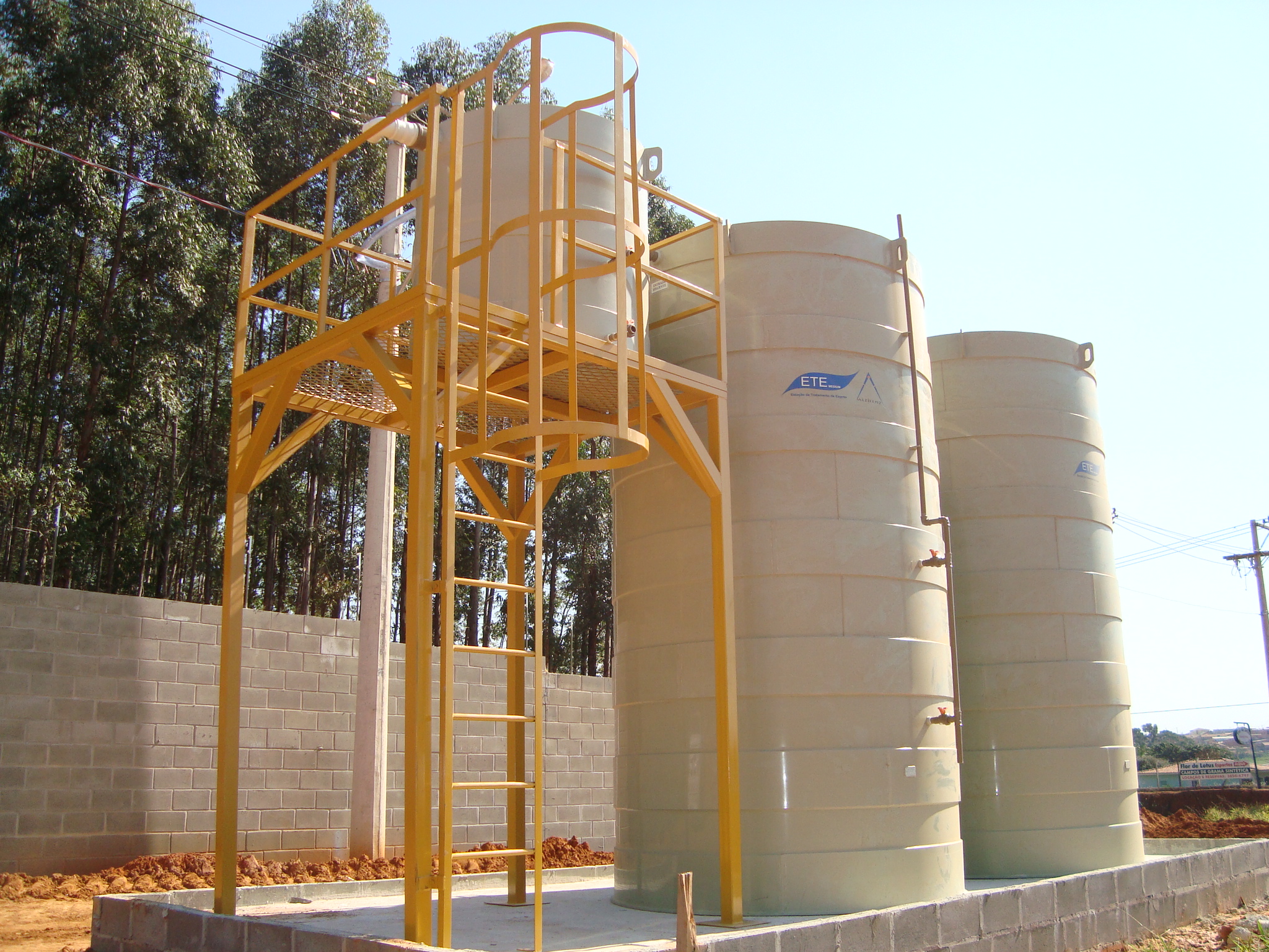 Sistema de Tratamento de Esgoto Biológico, constituído por reator anaeróbio, reator aeróbio (aeração forçada por soprador de ar e difusores) e decantador secundário ou reator anaeróbio, filtro biológico percolador (aeração natural) e decantador secundário, de acordo com a necessidade do cliente.
